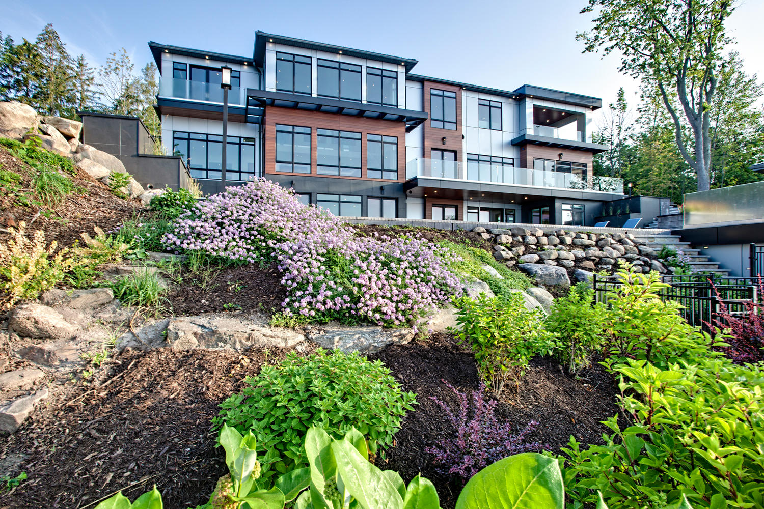 Landmark shows what becomes possible when a modern house, a difficult site and a serious view are planned as one system from street to shoreline.