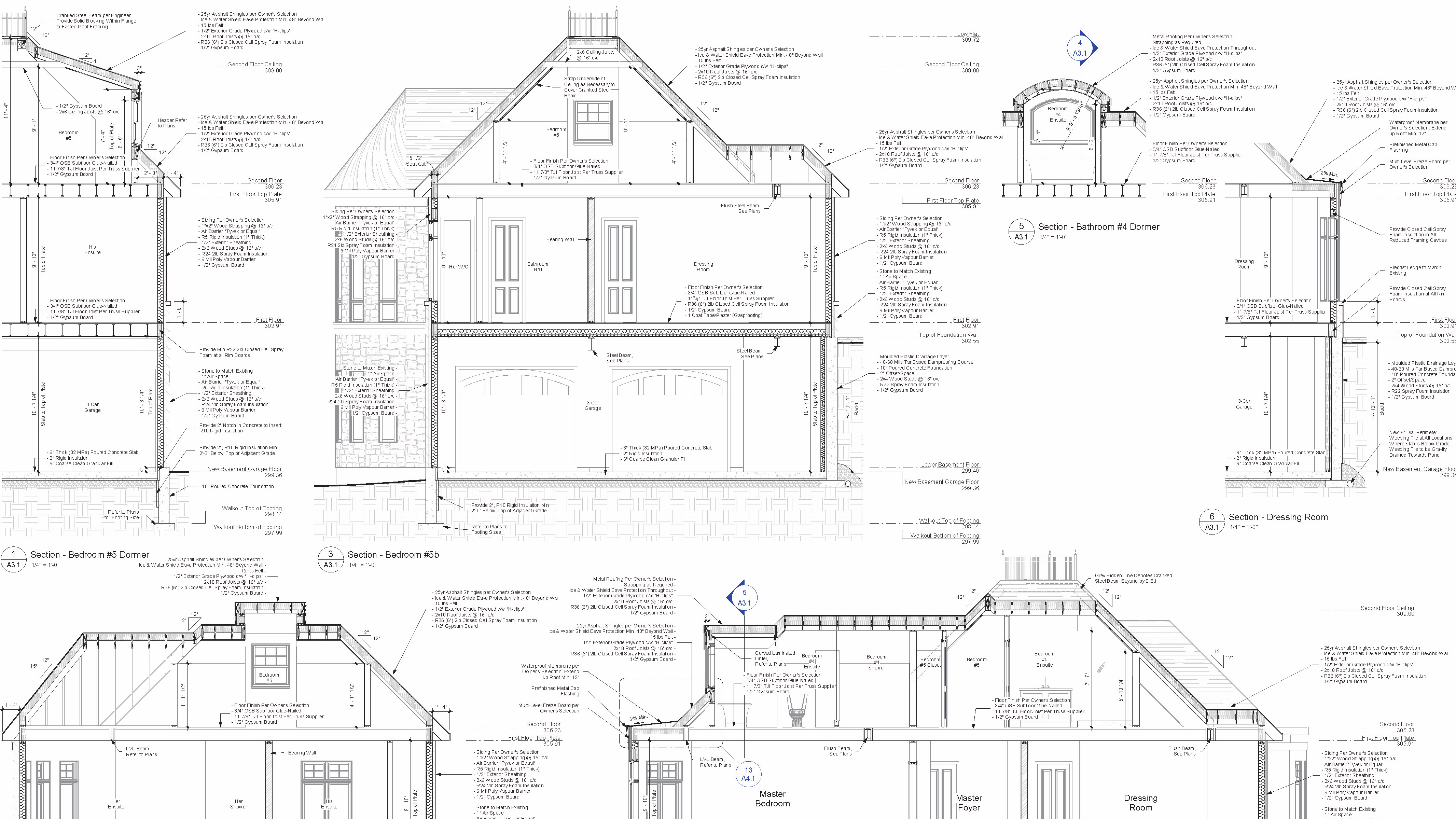 Floors were levelled to eliminate internal steps, while the elevator and service stairs were coordinated with the walkout condition and the new lower garage, so every level is directly linked to grade. The envelope, glazing and mechanical systems were recast with a Net Zero approach — in concert with extensive site services for ponds, waterfalls and grounds — to create a high-performance, low-maintenance estate that looks effortless to live in.